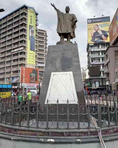 Unlike when there was pomp and colour when the statue was first uncovered by President Mwai Kibaki on the eve of the first Mashujaa Day celebrations in October 2011, this time round there was no fanfare. Only a few city county officers were around to cart away the iron sheets that covered it while it was being refurbished after being vandalised by individuals.