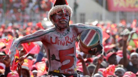 In Nakuru, supporters started trickling into the stadium as early as 7am. They chanted pro-Jubilee slogans and sang to the tunes of songs praising the president and his Jubilee Party blaring from huge speakers. They waved the miniature flags, as the president and his deputy acknowledged greetings from the roofs of their vehicles.