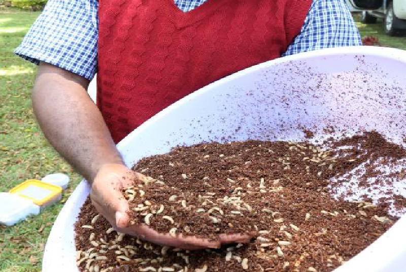 Dr Chrysantus Mbi Tanga from Icipe explains the nutritional value of organic Black soldier fly larvae. [Mose Sammy, Standard]