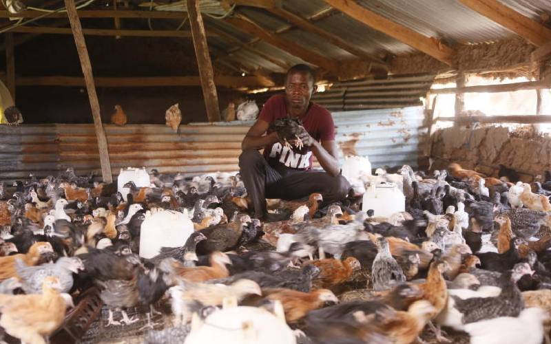Silas Juma at his ‘Engokho Kuku Farm’ at Nangili Village in Bungoma County on Jan 8, 2019. [Chrispen Sechere, Standard]