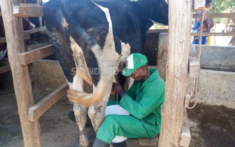 Francis Kahiga, who keeps dairy cows in Maralal town at Loikas village in Samburu County. [Photo, Standard]