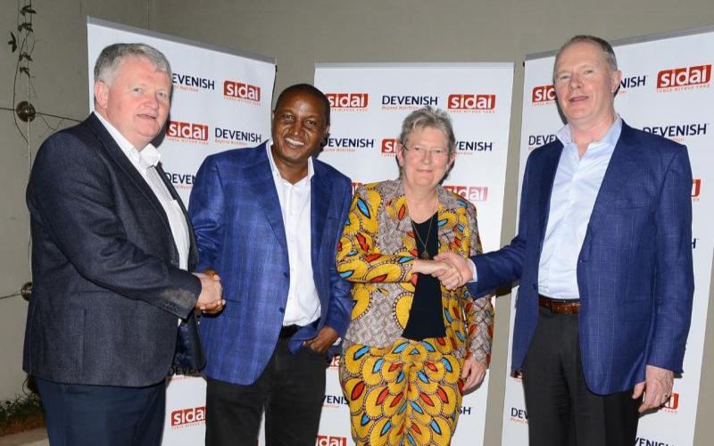 Devenish Group director East Africa Affairs Michael Maguire, Sidai Africa (Kenya) Ltd Managing Director Anthony Wainaina, Sidai Africa (Kenya) Ltd Chairperson Dr Christie Peacock, Devenish Group Executive Chairman Owen Brennan during the signing of the partnership at a Nairobi hotel on April 5, 2019.