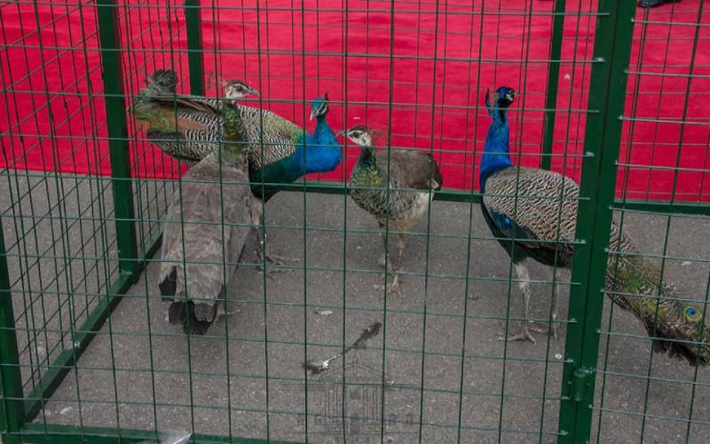 Peacocks require high and long shelters that are well-ventilated and fenced with wire mesh to prevent escaping. Image: State House Kenya