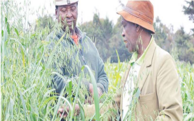 Farmers admire a mature crop of oat in Ol Joro Orok sub-county in Nyandarua. Many farmers have ventured into farming oat for fodder. PHOTO: DAVID MUGUNYU.