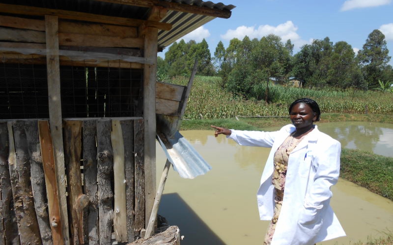 Peninah Mwanzo at the poultry farm in Malava, Kakamega Country.