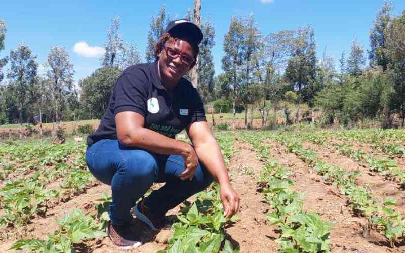 Dr. Beatrice Kiage explains to farmers like Charles Kanyoni how to grow the new bean varieties that have high yields. [Japheth Makau, Standard]