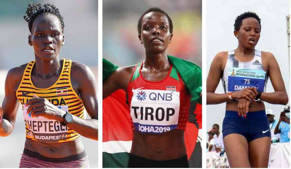 A collage of the late Rebecca Cheptegei, the late Agnes Tirop and the late Damaris Muthee. [courtesy]