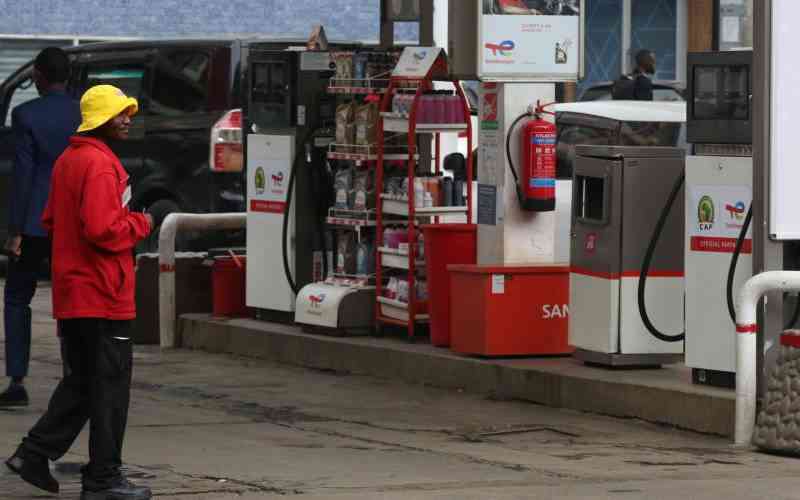 A pump attendant at empty Total Petrol (Gas) Station along Kimathi Street, Nairobi. [Elvis Ogina, Standard]