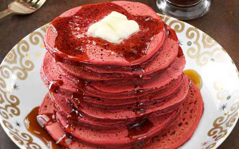 Red velvet pancakes are just like any other pancakes but with a more flavourful twist.