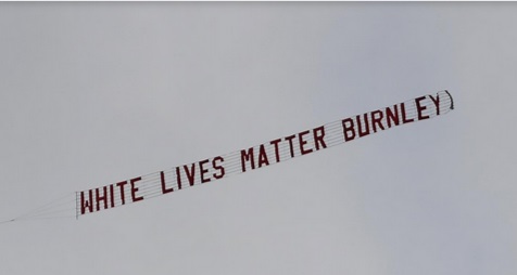 A plane carrying a banner declaring ‘White Lives Matter Burnley’ flew over Manchester City’s Etihad Stadium on Monday at the start of the Premier League game against Burnley.