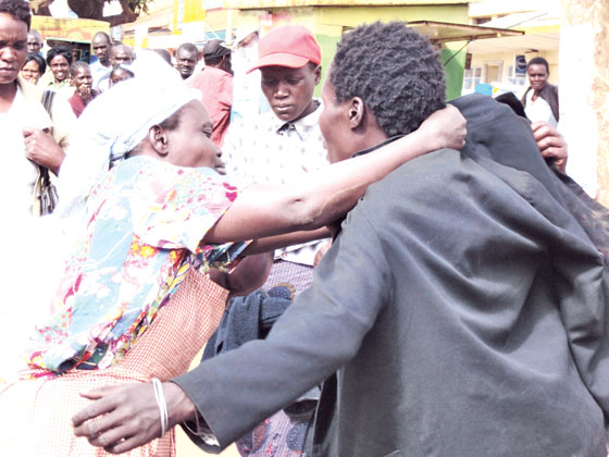 There was drama in Eldoret town when a woman (in black), undressed almost to the nude. She had allegedly wanted to see the manager of a supermarket to