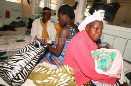 Women at the old Naivasha Sub-county Referral Hospital maternity wing share a bed. The free maternity initiative faces collapse due to failure by the national government to pay Sh100 million. [Photo: Antony Gitonga/Standard]