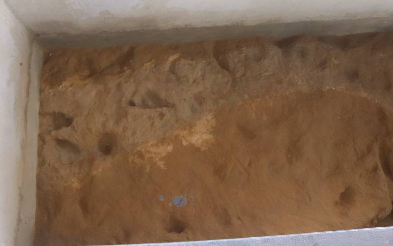 Some of the Homo erectus footprints in Ileret, in Marsabit County. [Nanjinia Wamuswa, Standard]