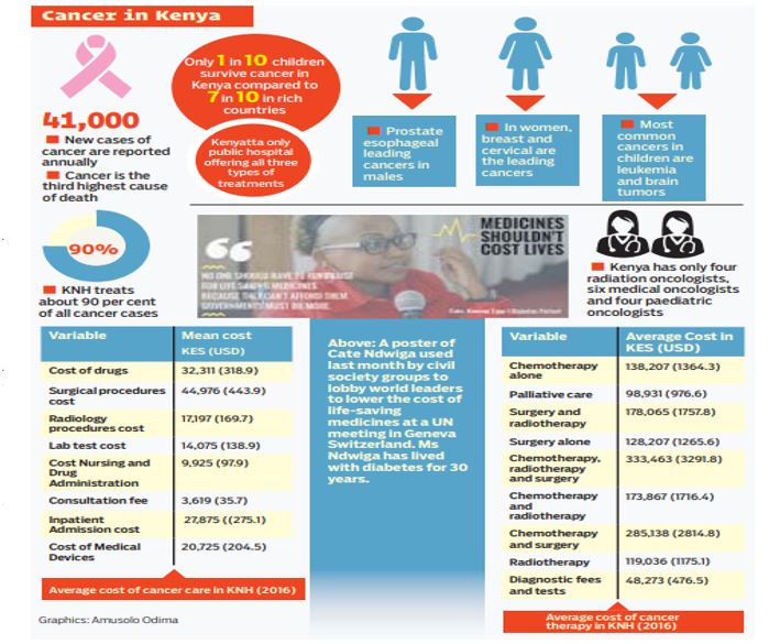The cost of treating cancer at KNH -- the only public health facility to offer comprehensive care, radiation, chemo and surgery -- depend on the type of tumour.