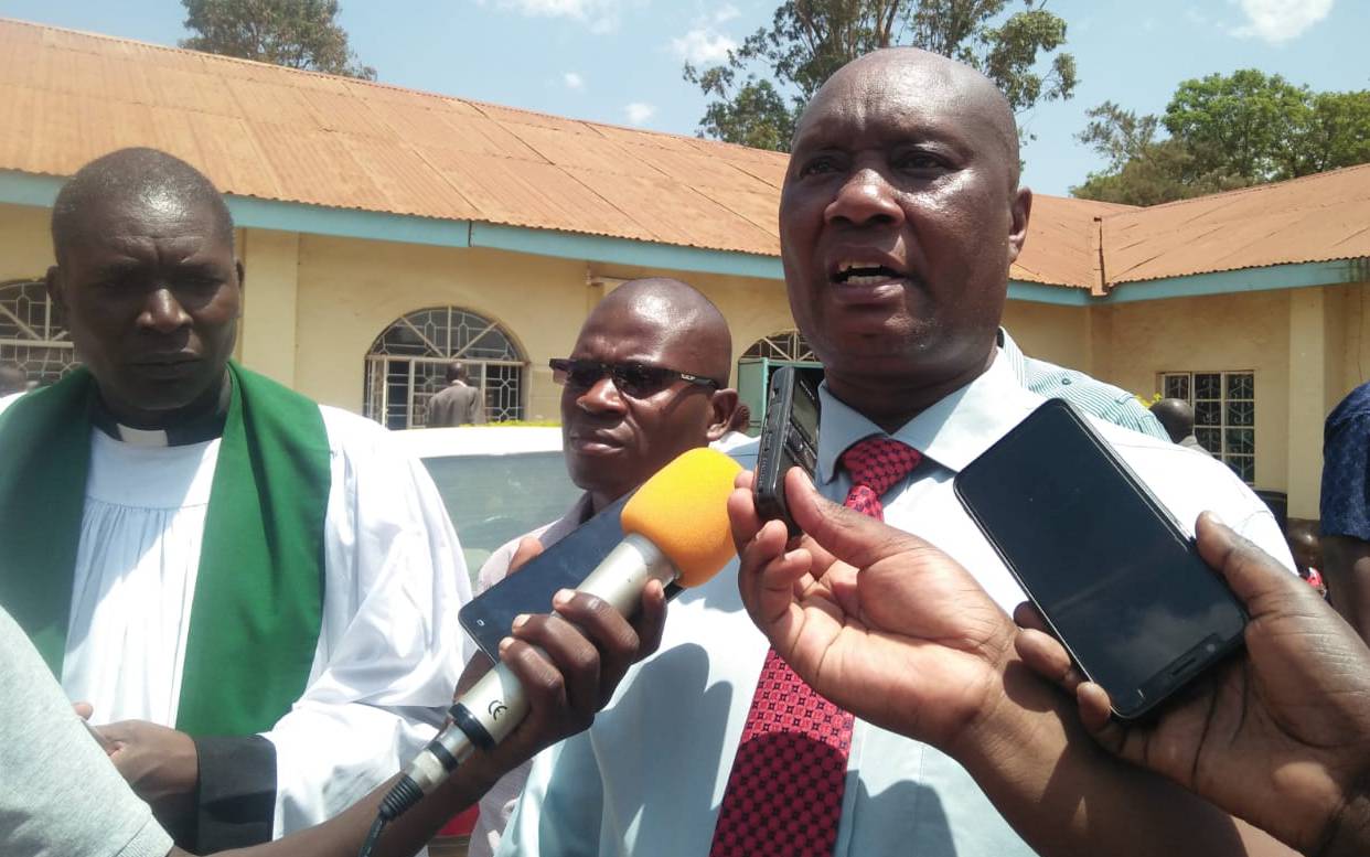 Governor Sospeter Ojaamong (right) address the media after a church service at St Stephen ACK in Busia town. [Photo: Ignatius Odanga/Standard]