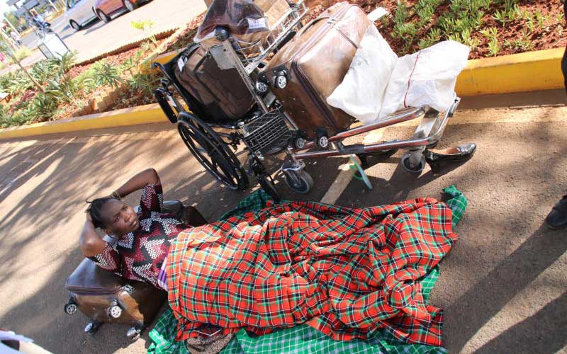 Wangari Ndumia, 25, was stuck at the Jomo Kenyatta International Airport on Sunday after she was whisked out of the plane together with her sister following an argument on whether she was fit to fly.