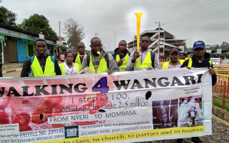 Wangari’s friends, going by the name Nyeri Elites, have organised a 631-kilometre walk to raise funds for her treatment. By last week, the group had collected a further Sh300,000 through the walk which began on June 13.