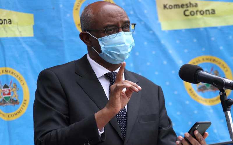 Health CAS Rashid Aman addresses a press conference on coronavirus update, in Nairobi, yesterday. [David Njaaga, Standard]