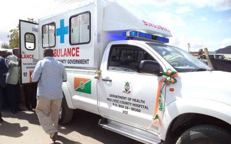 One of the four ambulances purchased by the Taita-Taveta County Government to improve referral services during its launch at Wundanyi in 2014. [File, Standard]