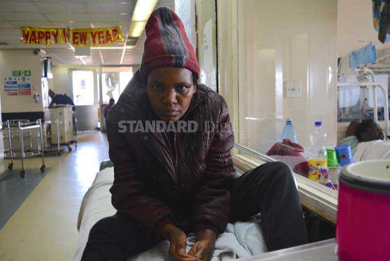 An attack by robbers last month is what landed her in KNH. She sustained deep cuts on her hands, legs, and head, which have been stitched but have yet to heal fully, as evidenced by her swollen hand. She struggled to sign the consent form before she was interviewed.