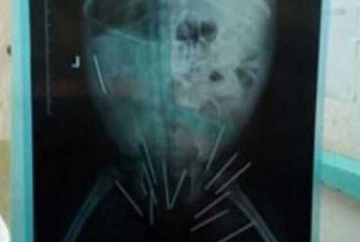 Doctors suspected the pins were imbedded into her body at a tender age by her grandparents who wanted to kill her.