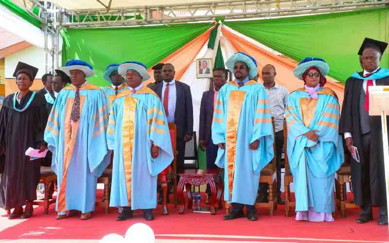 Kakamega Governor Fernandes Barasa and Matungu MP Oscar Nabulindo during the Fafa Medical Training College graduation ceremony, on December 15, 2025. [Mary Imenza, Standard]