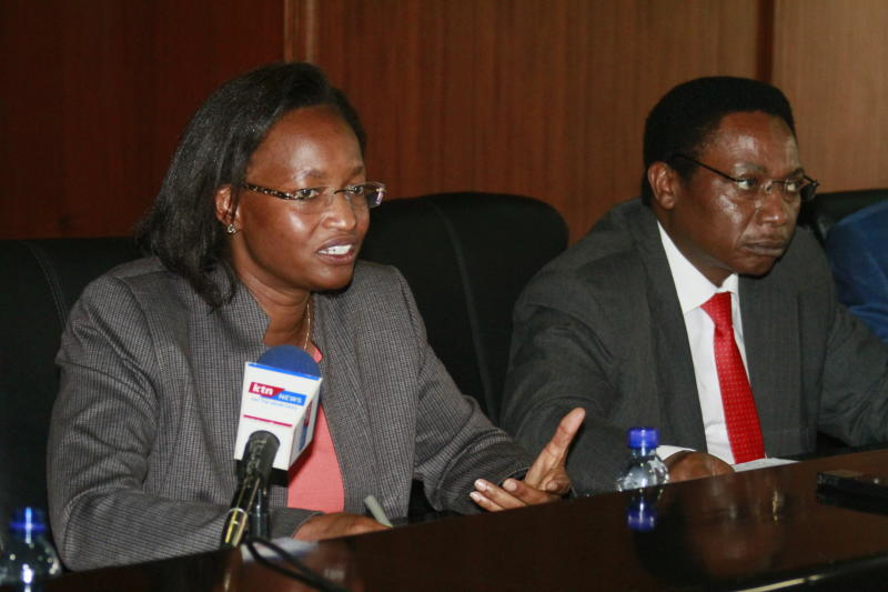Health PS Susan Mochache (L) and Director of Medical Services Jackson Kioko when they appeared before the National Assembly Health Committee at Continental House, Nairobi on April 2, 2019. [Boniface Okendo/Standard]