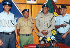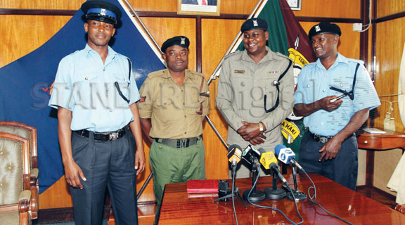 | Police constable Benjamin Chemjor, Sergeant Tawfiq Baya, Lower Kabete police chief Stephen Lelei and Sergeant Aden Iya at Jogoo House Wednesday. [PHOTO: MBUGUA KIBERA AMD FILE/ |