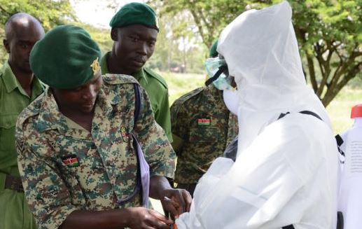NYS servicemen are taking through the process of fighting desert locusts. [Antony Gitonga, Standard]