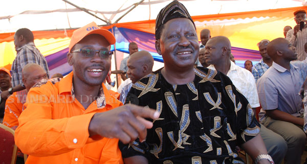 Homa Bay, Kenya: CORD leader Raila Odinga Thursday threw his weight behind ODM’s flag bearer in Homa Bay senatorial by election Moses Kajwang’.