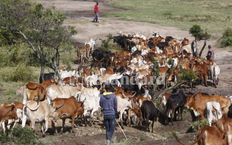 Herders with their livestock at Ol-olchura village in Sekenani location near Maasai Mara National Game reserve on June 14, 2020. [Kipsang Joseph, Standard]