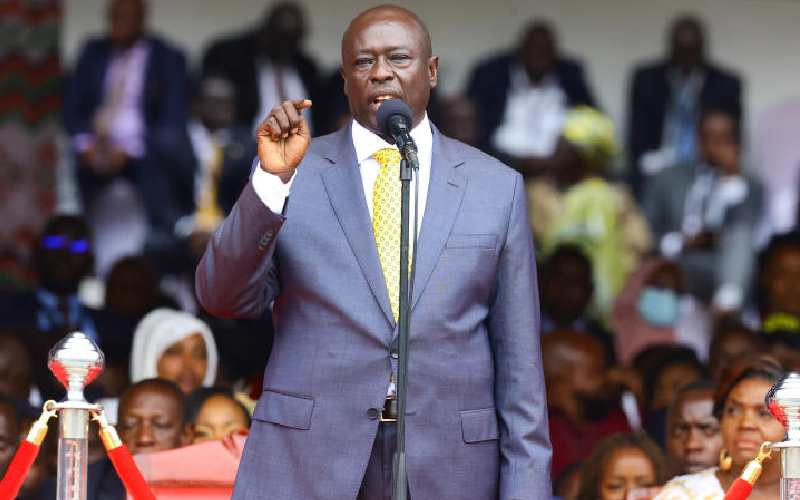 Deputy President Rigathi Gachagua speaks after being sworn at Kasarani on September 13, 2022. [Kelly Ayodi, Standard]