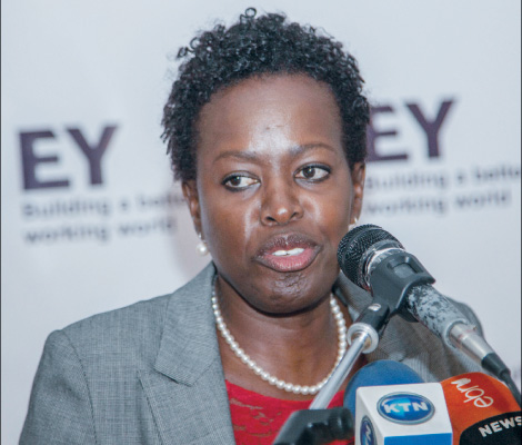 | Celestine Munda, East Region Advisory Leader at Ernst & Young speaking during the Global Consumer Banking Survey launch in Nairobi. [PHOTO: STANDARD] |