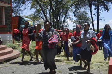 A group of women who had attended a Jubilee Party meeting at the party offices in Nakuru's Milimani Estate on October 15, 2016 run for dear life after a group of rowdy youth disrupted the meeting hitting them with rotten eggs. The meeting was called by a faction led by Naivasha businessman James Karimi to deliberate on party matters. Photo by Steve Mkawale/Standard.