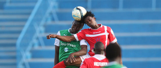 Western Stima FC Striker Kenneth Muguna and Haron Shakava (left) of Gor Mahia during Kpl match at Nyayo National Stadium on Wednesday, Oct 19, 2016. [PHOTO: JONAH ONYANGO/STANDARD]