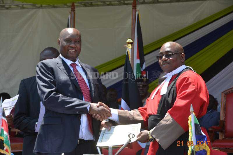 Busia Governor Sospeter Ojaamong during his swearing-in- ceremony at the Busia Stadium. [Photo/Standard]