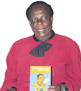 Mrs Clare Kwamboka Omanga displays a copy of children’s storybook she wrote, The Girl Who Couldn’t Keep a Secret
