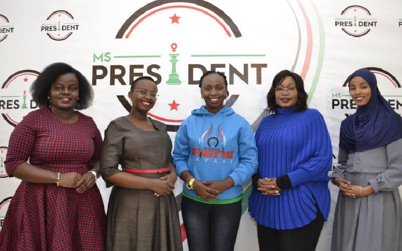Ms President contestants Waruguru Wa Kiai, Nereah Amondi Oketch, Irene Mayaka, Betty Adera and Umulkheir Mohammed. [Courtesy]