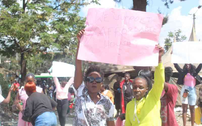 Residents protest to demand demotilion of demolition of Gadano Garage in Makongeni, Nairobi, on  December 7, 2025. [Benard Orwongo, Standard]