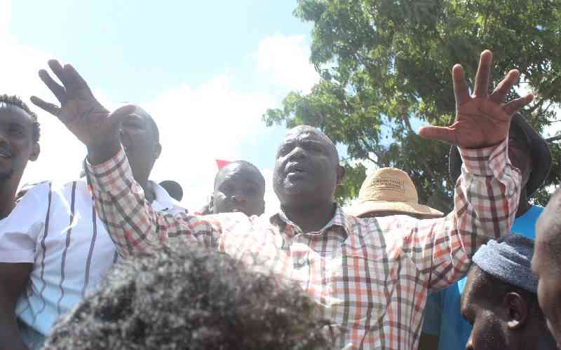 Makadara MP George Aladwa addresses residents protesting to demand demotilion of demolition of Gadano Garage in Makongeni, Nairobi, on  December 7, 2025. [Benard Orwongo, Standard]