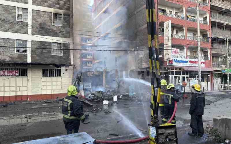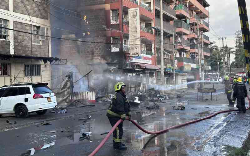 Gas cylinder depot explodes at Kisumu Ndogo estate in Donholm, Nairobi, firefighters at scene containing situation