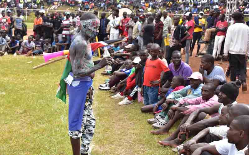Isaac Juma entertains the crowd during Cleo Malala Supercup held at the Mumias Sports Complex on December 31, 2021. Juma was found dead with several stabs wounds. [Mumo Munuve, Standard]