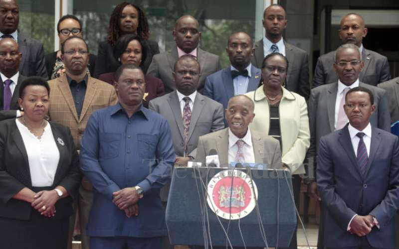 Head of Public Service Joseph Kinyua (centre) with some members of the Assumption of the Office of President Committee members and their guests. [Boniface Okendo, Standard]