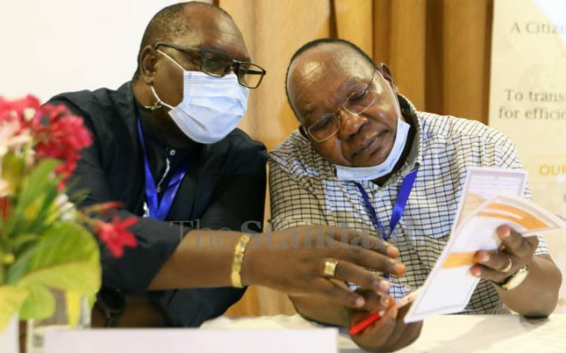 Public Service Commission Chief Executive Officer Simon Rotich (left). [Omondi Onyango, Standard]