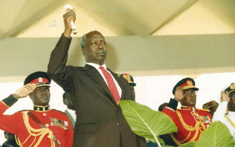 President Daniel Moi holding his Rungu during a public holiday. [File, Standard]
