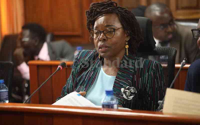 Controller of Budget Margaret Nyakang'o when she appeared before the Senate Devolution and InterGovernmental Committee at Parliament Buildings, Nairobi. [Elvis Ogina,Standard]