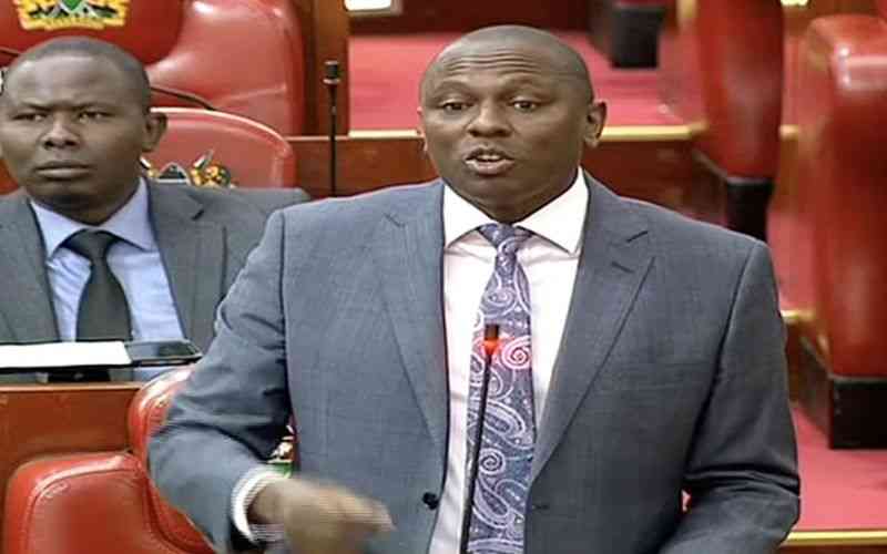 National Assembly Majority leader Kimani Ichungwa'h speaking on the floor of the house on Thursday. [Courtesy, PBU]