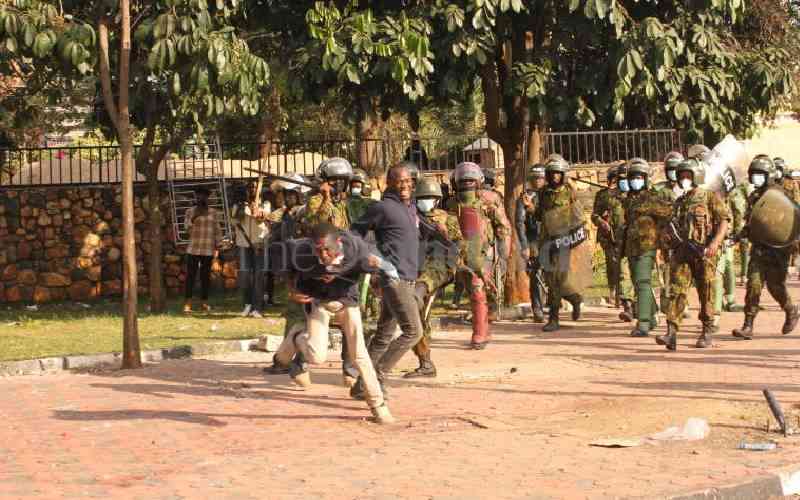 Anti-Finance Bill protestors flee from ant riot police near Parliament buildings on Tuesday, June 26,2024. [Collins Kweyu,Standard]