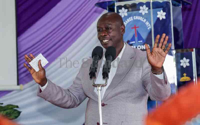 Deputy President Rigathi Gachagua addresses worshippers during a church service at Deliverance Church International, Kaplong, Bomet County on June 30, 2024. [DPCS, Standard]