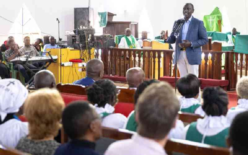 President William Ruto, addresses faithful during service at ACK Bungoma Diocese. on September 1, 2024. [File, Standard]